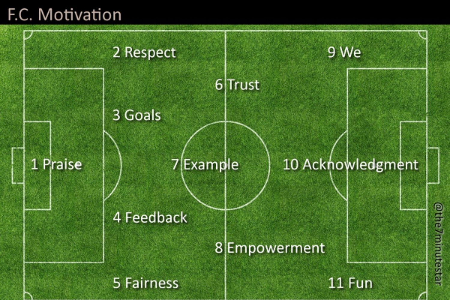 ACKNOWLEDGMENT is the older sibling of PRAISE, the goalie. ACKNOWLEDGMENT is the team’s top scorer. He’s the Messi, the super star of F.C. Motivation. But it’s not his scent of goal, which makes him a truly great player. It’s his positive attitude towards his fellow players’ performances. He constantly motivates them by pointing out what they do well. A good free kick by EMPOWERMENT, ACKNOWLEDGMENT will tell him. A great tackle by TRUST, ACKNOWLEDGMENT will tell him. A super pass by EXAMPLE, ACKNOWLEDGMENT will tell him. His positive, uplifting comments are the oil, which keeps the motor of F.C. Motivation running at full speed.